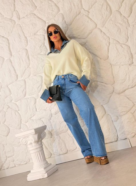 A Calça Jeans Zoe , em tecido jeans, com modelagem larga é perfeita para combinar com cropped ou body. A cintura alta e os detalhes em flare trazem um visual mais streed a peça.