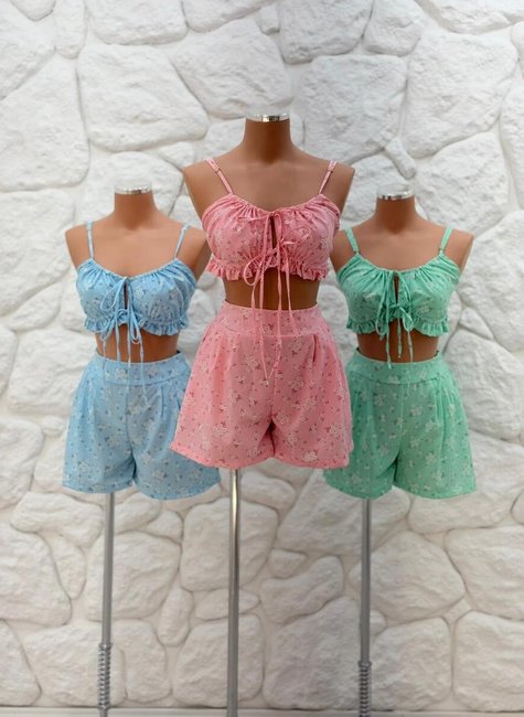 Transforme seu guarda-roupa de verão com o Conjunto 2 PÇS Bebel , é composto por cropped, e shorts 2 peça que combina com é estilo e conforto incomparável.