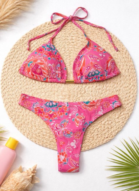 Conjunto Biquini Sarah formado por um top cortininha e calcinha asa delta perfeito para aproveitar os dias de sol! Composto em poliamida, com bojo e com amarração! Combine com uma saída de praia para um look completo!