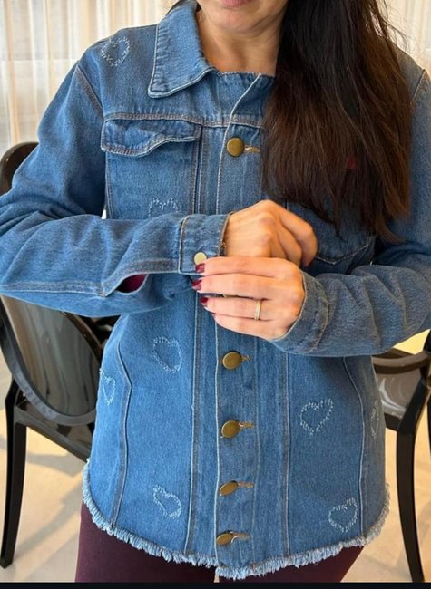 A jaqueta jeans Coração é obrigatória no guarda-roupa de toda mulher, e a Jaqueta Jeans é perfeita para completar seus looks de meia estação! Com detalhe em coração, lavagem escura e fecho em botões. O jeans traz um visual mais street a combinação e nessa modelagem ampla combina com vestido e calça.
