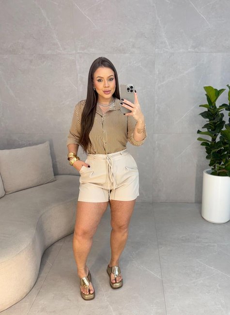 O Short Alfaiataria Com Zíper tem cintura Alta, comprimento Curto, detalhes de linha na frente e modelagem estilo mom. super versátil para o dia a dia. O short possui bolsos, fecho por Ziper e botão.
