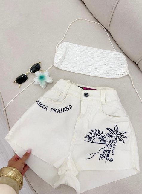 O Shorts Jeans Praia tem cintura alta, comprimento curto, detalhes em bordado. A lavagem clara é perfeita para combinar com qualquer parte de cima e super versátil para o dia a dia. O short possui bolsos, fecho por potão e zíper.