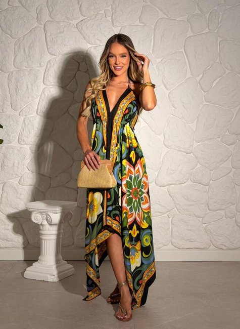 Vestido Indiano Pontas Julia é perfeito para os dias quentes! Combina o tecido estanpado.
